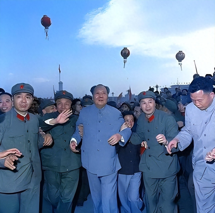 紧接着,毛主席将左右两人的手高高举起,定格了这一瞬间。